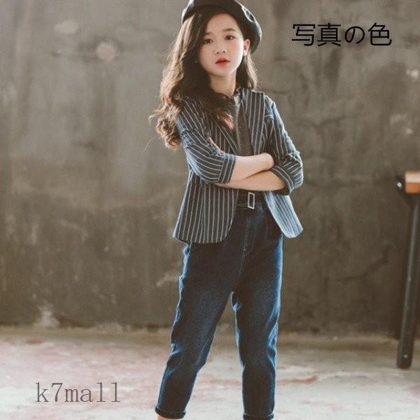 韓国子供服 フォーマル セットアップ 女の子 春秋着 2点セット トップス スーツコート デニムパンツ 上下 セット子供用 コート 女児 アウター ロングパンツ Supersport Tn